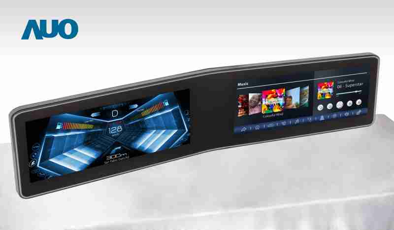 牛牛游戏 V 型曲面驾驶舱显示器,,,,采全贴合拼接仪表板及中控台显示屏 |